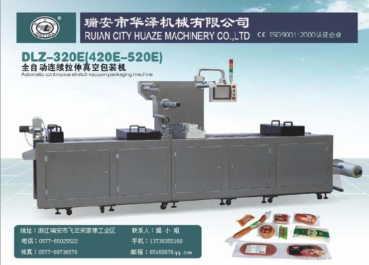 全自动真空包装机/全自动泡爪真空装机是瑞安市华泽机械公司在体贴包装机设备,几年的基础上全新研制的一款全自动真空机型,该机适用于各种食品、泡爪、肉制品、海产品、果蔬、冷却肉、鸡爪、医疗器械、注射针、输液器等产品进行充气、贴体、抽真空等固体物品包装。