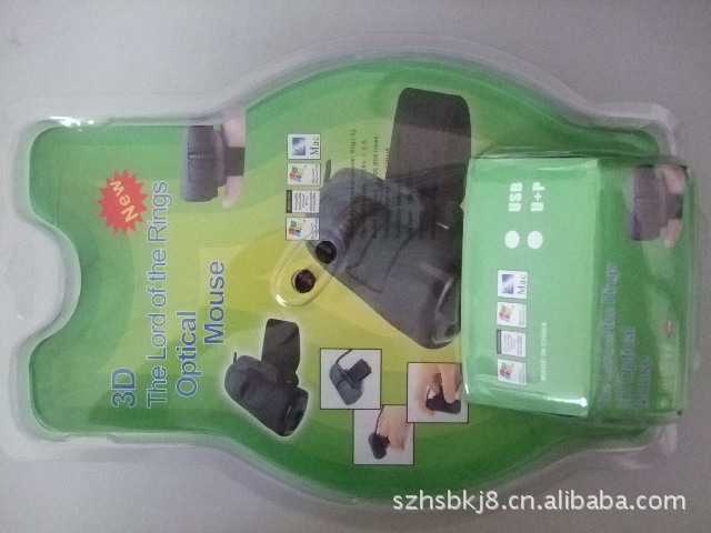 特殊的手指扣环设计,灵敏的光电鼠标,灵巧的外型设计,戴上同时可以打字。