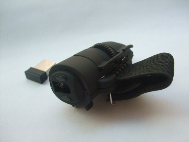 这款新鼠标看起来更像一个摄像头,它可以被绑在食指上,通过拇指来控制鼠标左、右键及中滚轴。它的重量也非常之轻巧,是一般光学鼠标的1/4—1/3重。