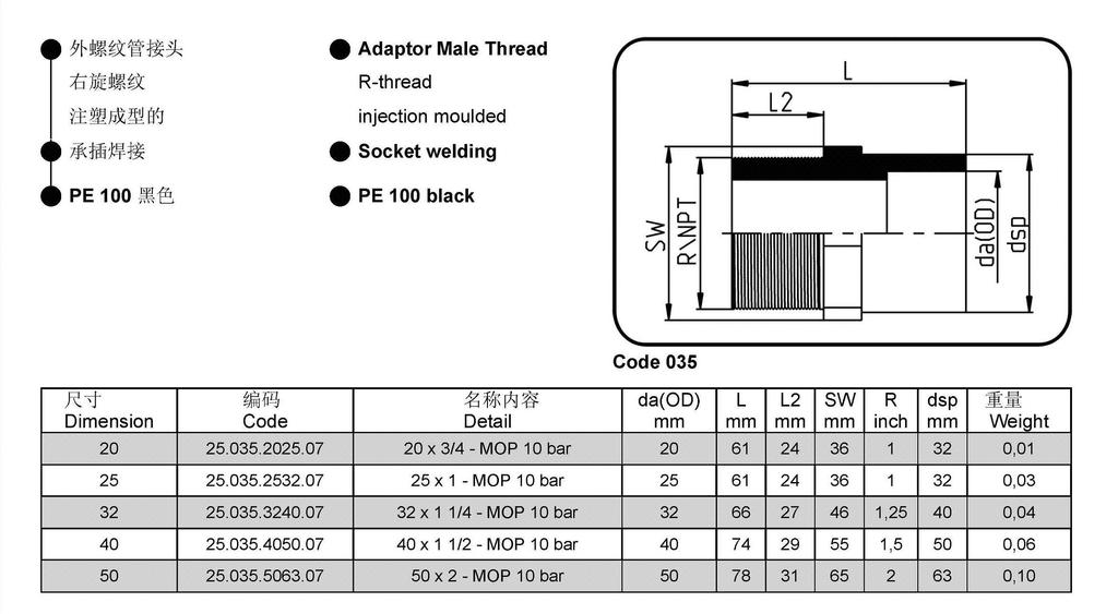 AGRU PE100/聚乙烯 外螺纹接头/Adaptor Male Thread