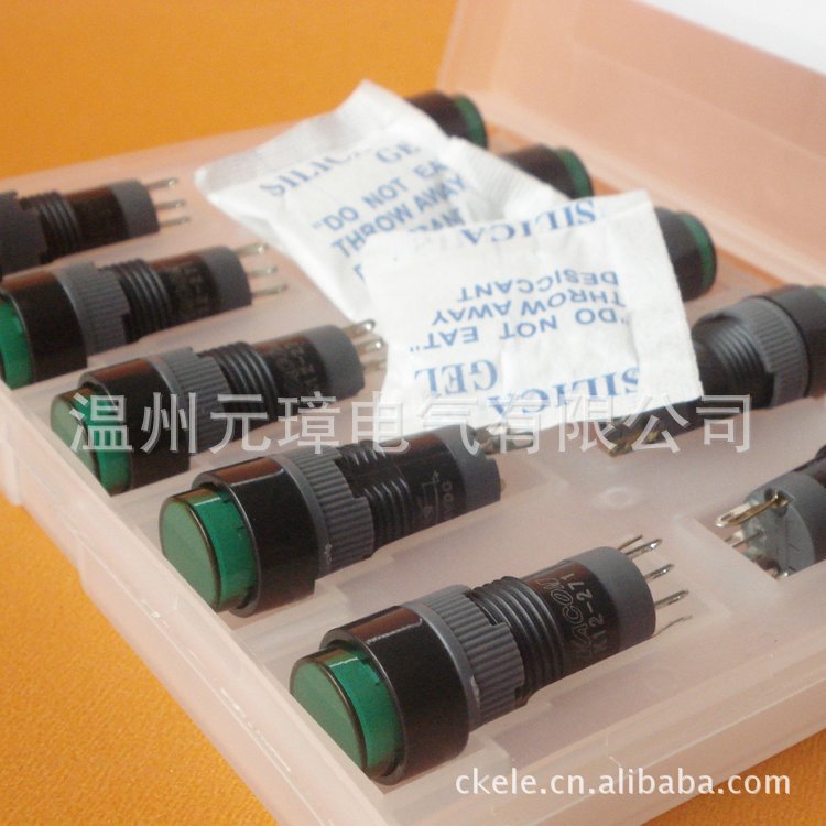 控制按钮K16系列·机种丰富,规格齐全,高性价比一体微型控制按钮;·带灯机种标准配置半导体LED灯,纯色高亮度,节能且寿命长,50000万小时以上。黄、绿、黄、蓝、白五种颜色;·内置限流电阻,无需外接,适用电压范围宽;·触点和端子镀24K金,带灯机种电源端子正极镀金,负极镀银,容易识别,确保配线正确;·可选1C(1NO+1NC)与2C(2NO+2NC)触点形式;·可选配附件和工具:灯珠、按钮更换工具,安装套筒,防护座,保护罩,端子罩,插座,电源变换器等……;·防护等级IP65,符合IEC/EN60529标准;·获得UL, c-UL, CE, CCC认证。