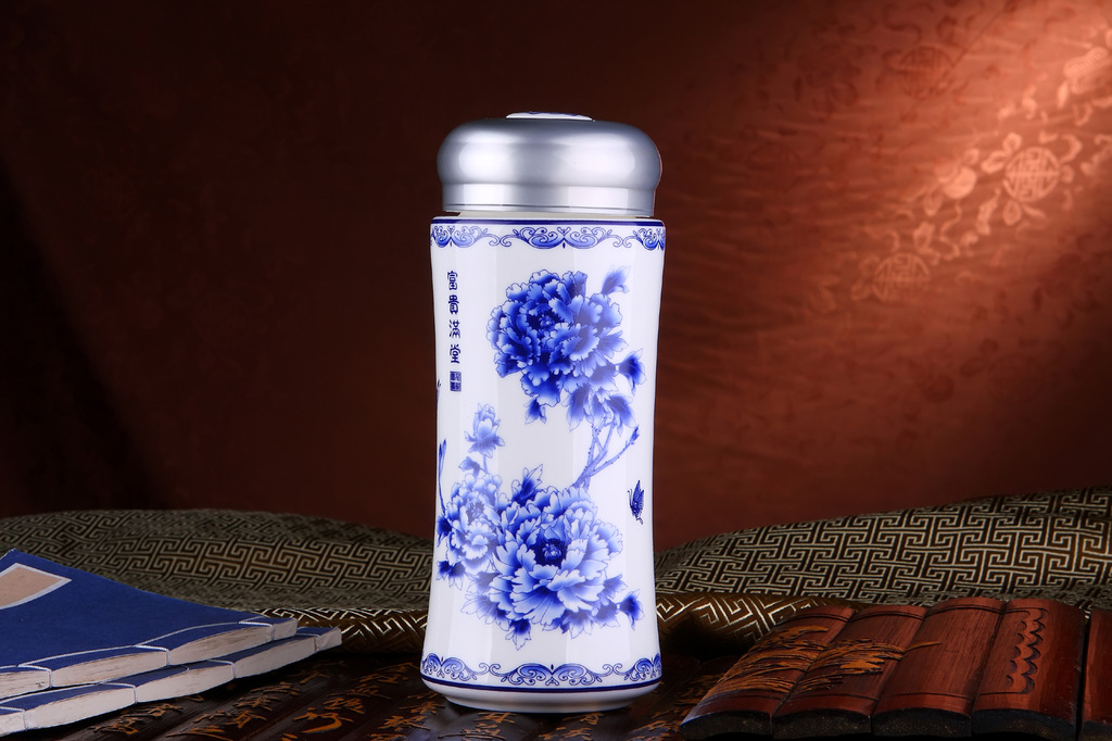 富贵满堂系列精品陶瓷保温杯+笔筒两件套 高档时尚创意礼品必备