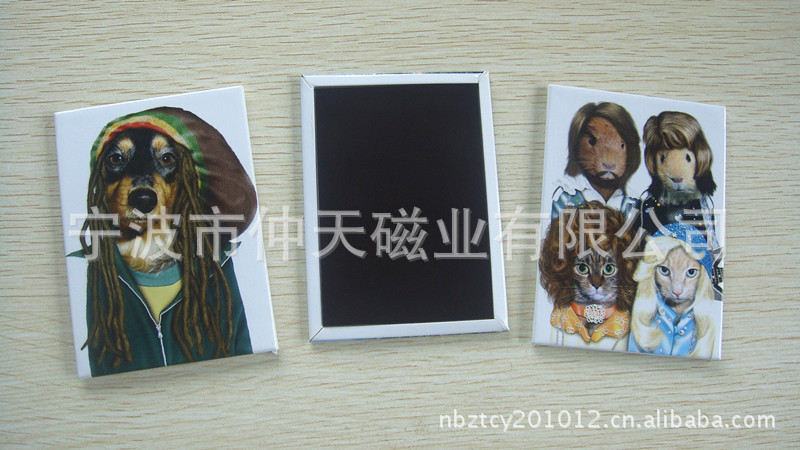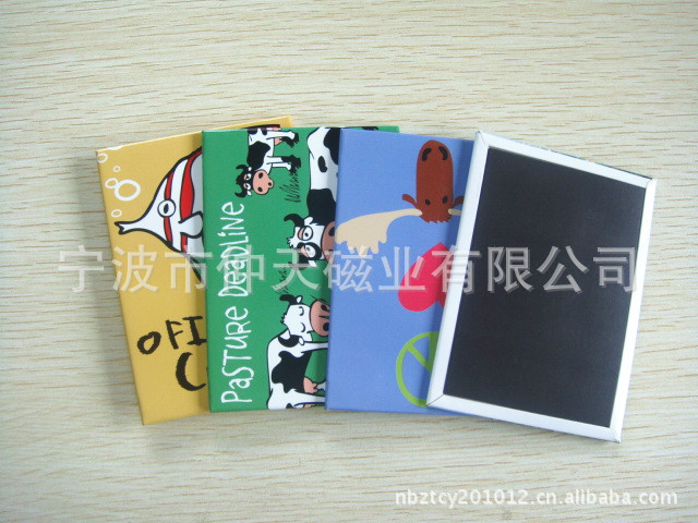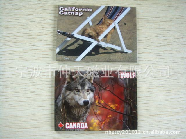 3) 磁性冰箱贴:采用下面软胶磁铁+上面铜版纸或PVC彩色印刷腹膜制作而成。