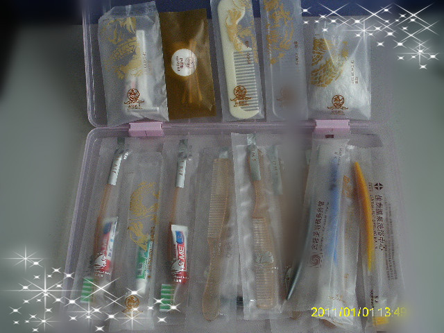 一星标准 序号 产品 物品描素 单价 1. 牙具 38孔牙刷, 塑管3克牙膏, 纸盒包装 0.30 2. 香皂 15 克力士香型, 进口皂粒 圆形 0.20 3. 梳子 塑料方梳 纸盒包装 0.20 4. 洗发液 袋装,12ml,质量符合QB/T1994 0.10 5. 淋浴液 袋装,12ml,质量符合QB/1994 0.10 6. 拖鞋 无纺布拖鞋2mm 底,50克面料 0.35 二星标准 序号 产品 物品描素 单价 1. 牙具 中档蛇头牙刷, 铝皮3克牙膏, 彩盒包装 0.33 2. 香皂 20克力士香型, 进口皂粒 0.25 3. 梳子 美人鱼梳,印logo, 彩盒包装 0.24 4. 洗发液 20克 瓶装,质量符合QB/T1994 0.28 5. 淋浴液 20克 瓶装,质量符合QB/1994 0.28 6. 浴帽 普通浴帽 彩盒包装 0.18 7. 拖鞋 无纺布拖鞋2.5mm 底,70克面料 0.40 三星标准 序号 产品 物品描素 单价 1. 牙具 高档牙刷, 铝皮3克牙膏, 彩盒包装 0.35 2. 香皂 25 克力士香型, 进口皂粒 彩盒包装 0.30 3. 梳子 塑料长条梳,印logo, 彩盒包装 0.24 4. 洗发液 25克 软管装,质量符合QB/T1994 0.30 5. 淋浴液 25克 软管装,质量符合QB/1994 0.30 6. 涧肤露 25克装,质量符合QB/1994 0.58 7. 浴帽 烤边型,加厚 彩盒包装 0.20 8. 火柴 15 根 彩盒包装 0.15 9. 口杯套 已消毒 0.05 10. 剃须刀 双层剃须刀,加 5g 剃须膏 彩盒包装 0.38 11. 拖鞋 无纺布拖鞋,3mm 底,70克面料 0.45 12. 杯垫 吸水杯垫印Logo 5000起 0.06 13. 针线包 四线两针两扣 彩盒包装 0.18 14. 圆珠笔 仿铜头印Logo 5000起 0.28 15. 夹纸笔 印Logo 0.05 16. 擦鞋纸 0.08 四星标准 序号 产品 物品描素 单价 1. 牙具 高档透明尼龙牙刷, 铝皮6克牙膏,彩盒包装 0.48 2. 香皂 30克力士香型, 进口皂粒 彩盒包装 0.38 3. 梳子 高档木质方梳 彩盒包装 0.42 4. 洗发液 30克 软管装,质量符合QB/T1994 0.34 5. 淋浴液 30克 软管装,质量符合QB/1994 0.34 6. 涧肤露 30克 软管装,质量符合QB/1994 0.58 7. 护发素 30克 软管装,质量符合QB/1994 0.58 8. 浴帽 高档烤边型 彩盒包装 0.20 9. 火柴 16 根 彩盒包装 0.16 10. 口杯套 已消毒 0.05 11. 剃须刀 双层剃须刀,加 5g 剃须膏 彩盒包装 0.40 12. 拖鞋 绒布镶底拖鞋 (高档毛巾拖鞋) 金丝线绣 2.80 13. 护理包 8cm砂指锉,4根棉签,两棉球 彩盒包装 0.30 14. 杯垫 吸水杯垫印Logo 5000起 0.05 15. 针线包 六线两针两扣 彩盒包装 0.20 16. 圆珠笔 铜头印Logo 5000起 0.28 17. 夹纸笔 印Logo 0.06 五星标准 序号 产品 物品描素 单价 1. 牙具 透明磨尖丝牙刷,铝皮8克牙膏 彩盒包装 0.75 2. 香皂 50克力士香型, 进口皂粒 彩盒包装 0.80 3. 梳子 高档塑料折叠梳 印Logo 0.80 4. 洗发液 30克 磨砂软管装,质量符合QB/T1994 0.68 5. 淋浴液 30克 磨砂软管装,质量符合QB/1994 0.68 6. 涧肤露 30克 磨砂软管装,质量符合QB/1994 0.88 7. 护发素 30克 磨砂软管装,质量符合QB/1994 0.88 8. 浴帽 高档烤边型透明 浴帽 彩盒包装 0.22 9. 火柴 16 根 彩盒包装 0.22 10. 口杯套 已消毒 印Logo 0.07 11. 剃须刀 双层精钢剃须刀,8g 剃须膏 彩盒包装 0.78 12. 拖鞋 割绒镶底拖鞋 ,电脑绣Logo 3.50 13. 护理包 8cm砂指锉,4根棉签,两棉球 彩盒包装 0.30 14. 杯垫 五层吸水杯垫印Logo 5000起 0.16 15. 针线包 透明塑合 六色针线 0.78 16. 圆珠笔 铜头印Logo 5000起 0.36 17. 擦鞋布 绒布,手袋式加大 印Logo 0.50 常见问题 | 1、我可以购买你厂所有项目中的单一项目吗? 答:可以的,你可以购买套装系列中单一产品,例如拖鞋、牙刷、梳子、香皂等中的任何一个项目。 2、如何获得贵公司产品样品? 答:您好!首先很高兴您对我厂产品感兴趣。我们网站产品均为实物拍摄都有实物样板,单件样品免费提供,整套样板收费,样品费下单后大货货款中扣除。 3、可以在我们的产品上面打上我们酒店的LOGO吗? 答:完全可以,我们这边有专业的设计人员会给您精心设计,设计满意再下单生产!(印刷LOGO不需增收任何费用) 4、我收到货的时候和网上看到的一样吗? 答:我们网站图片均为实物拍摄,只要是我们网站的图片就代表有实物。(这有友情提示下那些喜欢盗用别人图片的,盗用可耻,违者必究) 5、你们的产品在价格上面有优势呢? 答:本厂产品均为自产自销的经营模式。始终坚持厂价薄利多销。 6、贵公司产品质量有保障吗? 答:这个您放心,本店已加入消费者保障协议。阿里巴巴先行赔付品质全程无忧,请您放心购买! |
