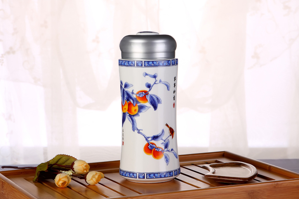 富贵满堂系列精品陶瓷保温杯+笔筒两件套 高档时尚创意礼品必备