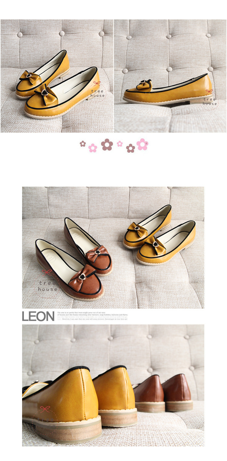 韩版复古蝴蝶结桃心装饰 浅口圆头平跟单鞋 优雅女鞋
