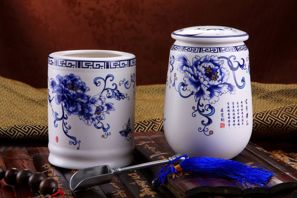 富贵荣华系列时尚钧瓷笔筒+茶叶罐 精美高档陶瓷两件套 促销礼品