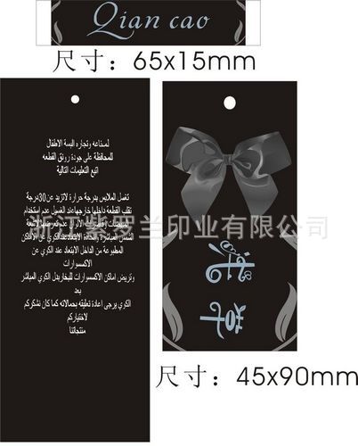 | 产品介绍: 服装吊牌又称吊牌,挂牌,标牌,合格证。适用于食品,服装,化妆品,五金,超市,电器等各个行业。做为公司产品的介绍及品牌认准。 吊牌的材质: 1、白卡纸 2、灰底白板纸 3、铜版纸 4、PVC 5、PET 印刷工艺: 1、胶印 2、凹印 3、凸印 4、丝印 5、UV印刷 6、烫金(烫银) 7、穿绳子 我们一般采用白卡纸、灰底白板纸、PVC,PET,牌子比如中华,晨明,太阳等。。。。。。 交货时间:一个星期内出货,加急3天内交货!(量大再议) 我们底下的价格只供参考,因为每个规格和起订的数量及材料颜色部分都是一样的,我们会根据贵公司的需求量、材质、数量、颜色提供详细的报价,欢迎新老客人来电咨询! 只需一个电话,均上门服务! 所有包装印刷制品都需要定做,由于近段时间原材料价格不定期上涨,造成刷报价无法固定,本店所有的报价仅供参考,具体价格由客户的尺寸、材质、工艺要求、数量而定。如需开票增税10%,普税6%。 我方可代买方送到指定地点,运费由买方承担。 |