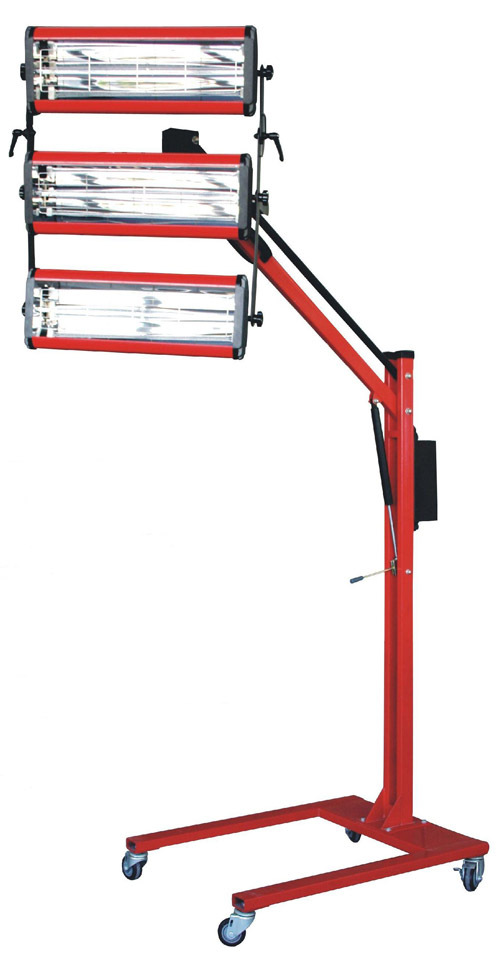 短波红外不同于中、长波的远红外,他的波长具有很强的渗透力,短波红外线,也叫(近红外),直入漆层,是涂漆层机体(车身外壳)的温度迅速升高产生自发热效应,涂漆层中的水分(或溶剂)则迅速由内向外挥发,油漆涂料化学的振动频率相同时,油漆涂料化学键因发生共振而加大聚合基因的振幅,使交联聚合的几率增大,靠其分子的化学反应,加速漆涂层的固化。