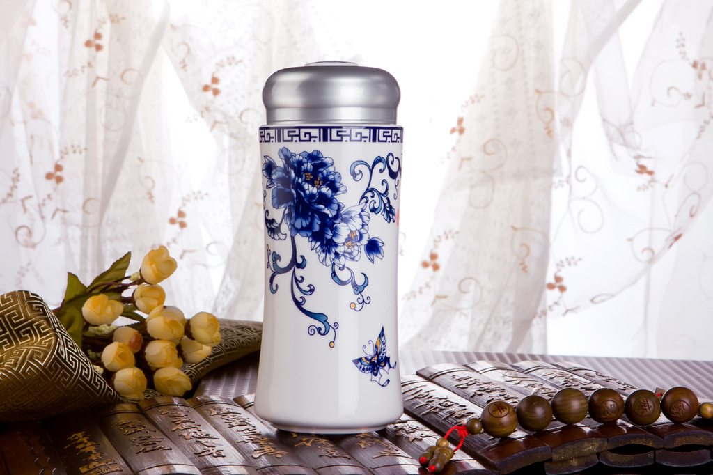 富贵满堂系列精品陶瓷保温杯+笔筒两件套 高档时尚创意礼品必备