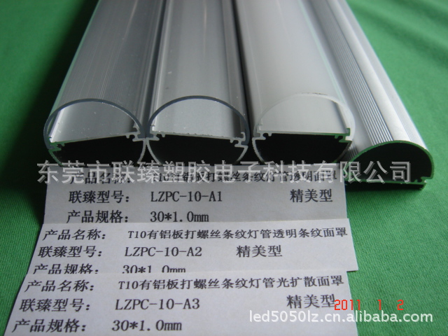 我厂专业生产日光管外壳, 采用1/2铝型材和1/2PC灯罩组合而成,铝型材外观设计精细条纹状,达到精美外观且易清洁。日光管PC灯罩是一款用于现代LED节能日光灯管的塑胶配件,达到高透明,高透光率的优质产品。