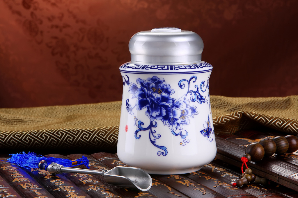 供应 陶瓷礼品批发 深圳泰和君瓷福临门青花瓷如意茶叶罐