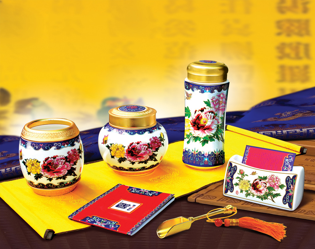 锦上添花系列陶瓷茶具四件套 精品君瓷笔筒+名片夹+茶叶罐+保温杯