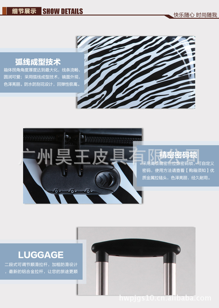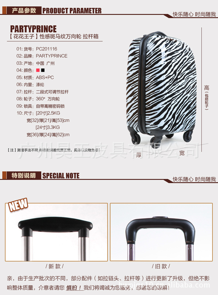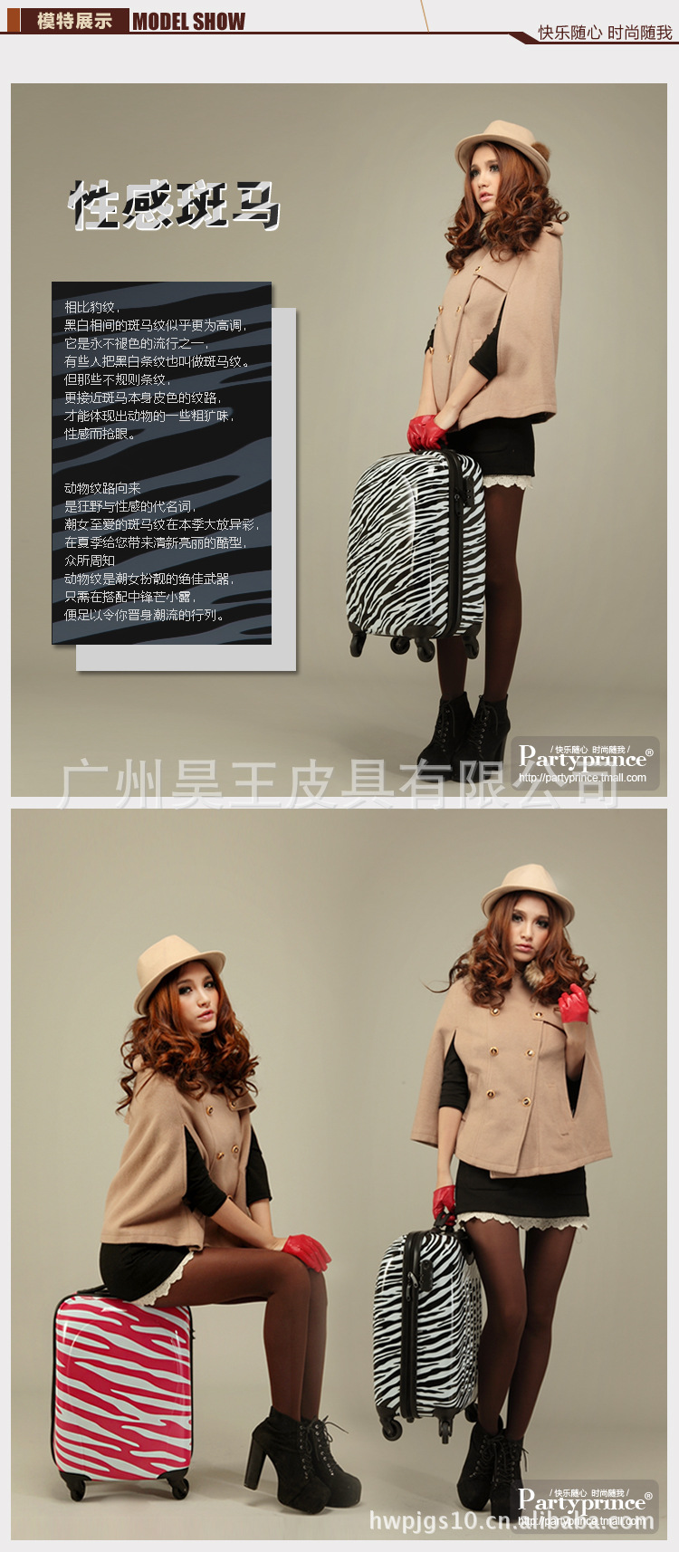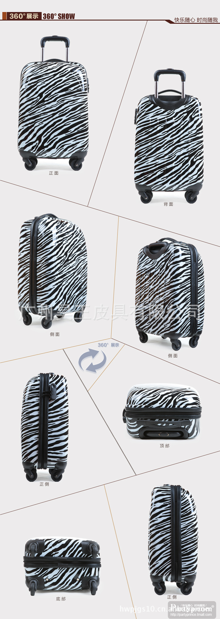 厂家直销高光镜面 野性之美黑色斑马纹 ABS拉杆箱
