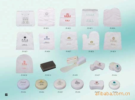 酒店一次性用品主要有以下产品:牙具、梳子、剃须刀、香皂、浴帽、洗发液、沐浴液、擦鞋布、针线包、杯垫、杯盖、消毒封条、垃圾袋、火柴、标签笔、拖鞋、软抽纸等。 |