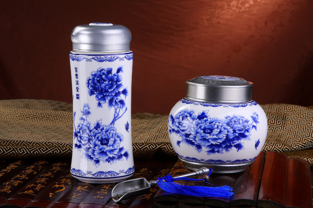富贵满堂系列精品君瓷两家套 陶瓷保温杯+茶叶罐套装 创意礼品