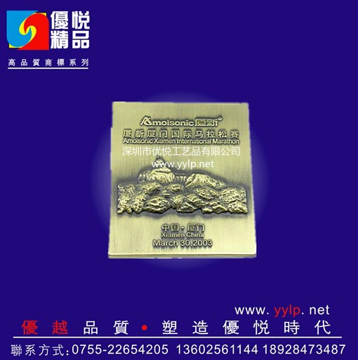 本厂专业生产:金属工艺品;如金属徽章、胸章、胸牌、纪念章、勋章、奖章、奖牌、奖杯、标牌、铝合金相框、画框、海报框、名片夹、工号牌、铭牌、门牌、领带夹、袖扣、帽夹、书签、开瓶器、钥匙扣、手机吊饰、金属贵宾卡、纪念币、游戏币、代币、金币、银币、纸镇、等,同时我司与一些知名的食品,汽车,餐饮、各大高校,以及一些地方行政职能部门建立了良好的合作关系。产品