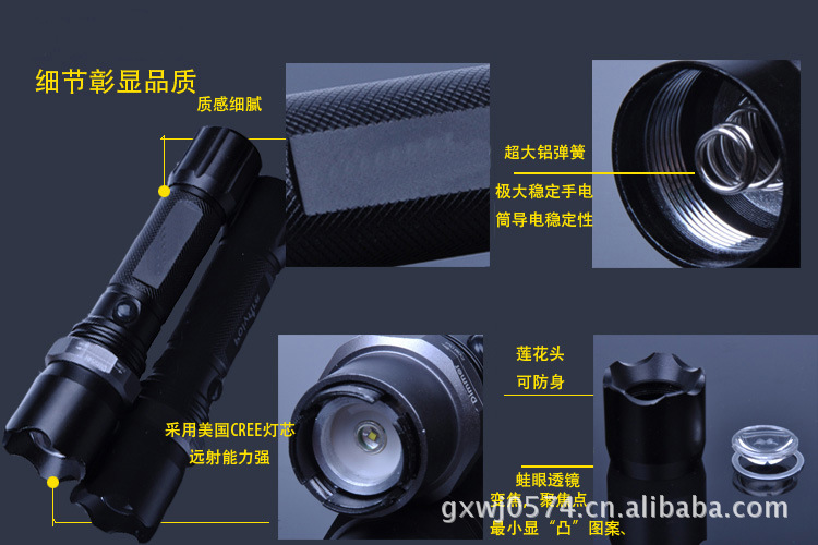 EM—L001警灯 流明灯含税:FOB宁波港口RMB单价:18.5元 (充电器/车充/电池/彩合)套装单价:35,6元 科瑞灯含税:FOB宁波港口RMB单价:23元 (充电器/车充/电池/彩合)套装单价:40.98元 规格:长16*头3.5*2.7CM 净重:155克 灯泡:LED/科瑞 流明:240/250 射程:200/500米 防雨:是 充电:是 续照:[视电池而定 亮度\:100/240光通量 寿命:10万小时以上 调光:4档(光亮.节能.闪光.变焦 电压:4.5伏 备注:因本品亮度极高,近距离对眼睛直射可能使人晕炫,请务必保管好电筒,不要让小孩直接照射到眼睛 与我联系获得最新报价