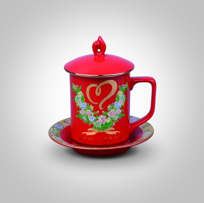 2012厂家新款热销精美陶瓷杯子 好日子中国红陶瓷单杯 纪念品