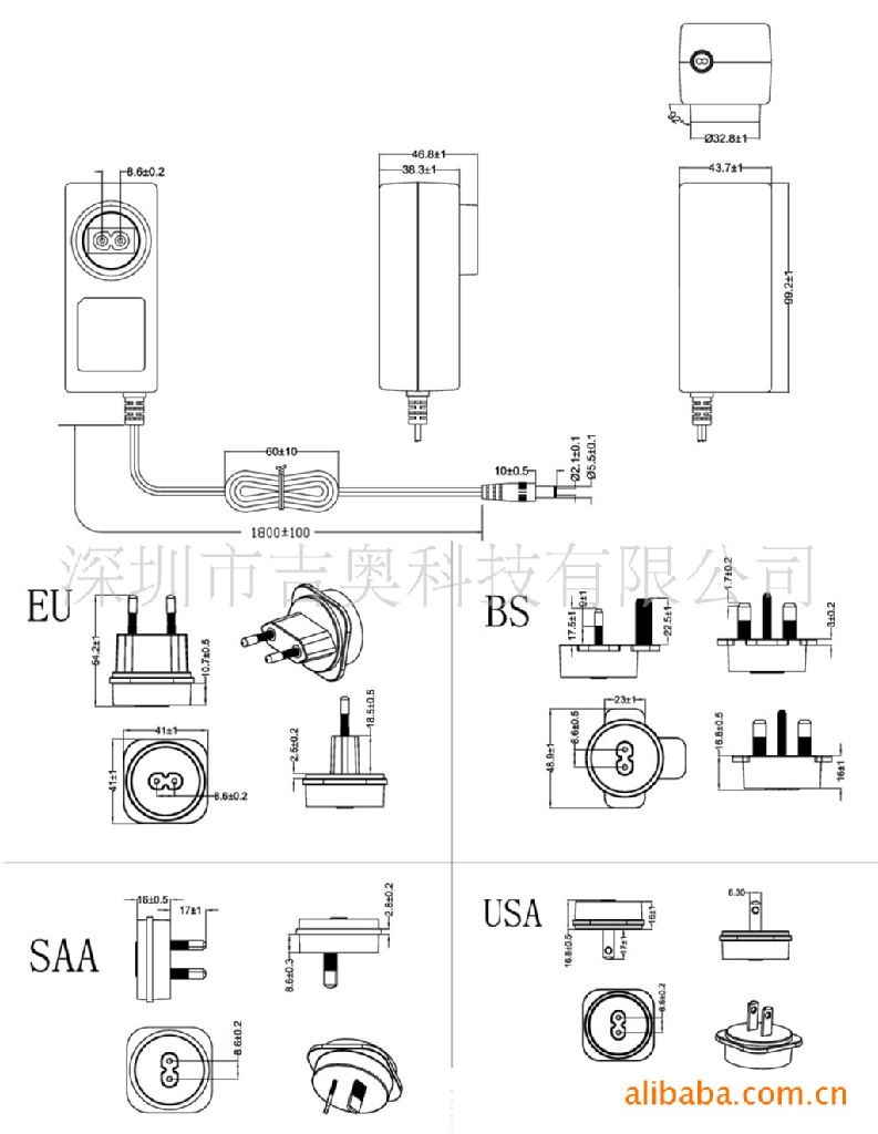 其他输出参数规格: 5V 1A ,5v 0.5A ,3V 1.5A ,3.3V 1.5A , 4.2V 0.7A ,4.5V 0.5A , 5V 1.0A , 9V 0.65A ,12V 0.5A ,15V 0.4A 等