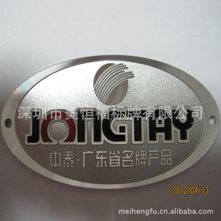 金属标牌在现代社会各个领域运用越来越多,广泛运用与电子产品、家电、机械及民用产品等领域。金属标牌主要以铜、铁、铝、锌合金、铅锡合金等原材料为基础,通过冲压、压铸、蚀刻、印刷、珐琅、仿珐琅、烤漆等工艺制作而成。