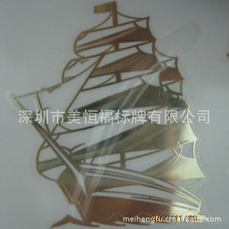 金属分体自粘标牌主要以金属镍、铬、铜、24K黄金、进口3M胶等材料精制而成,颜色主要分为:金色、银色、枪黑色。单色、双色、多色也可以随客户要求自配颜色,使用方便,撕开转移膜一贴即可。完全弃用钻孔,上螺丝,电焊等烦杂的操作程序.本标牌图像和文字处理自由通畅,具有耀眼的光泽度,夺目的视觉效果,边缘光滑立体感强,精致华丽。背带强力胶,一贴即牢。
