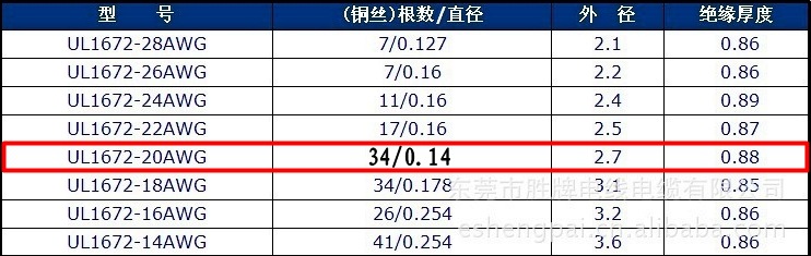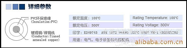 1、导体使用单条或绞线22AWG 11/0.16镀锡铜丝;