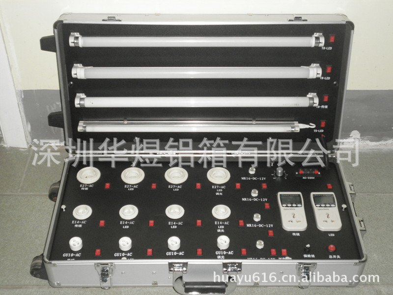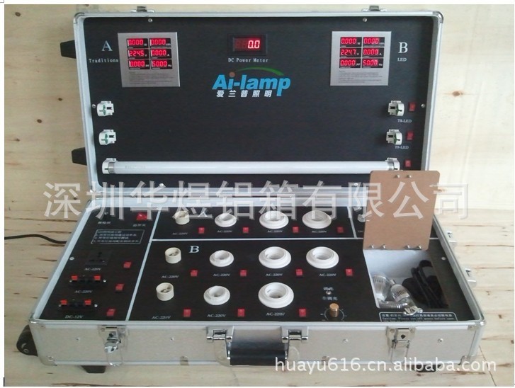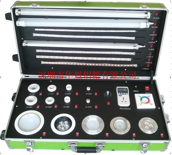 LED展示箱是为LED企业或LED销售人员在演示产品用的。比如,你再怎么跟客户说LED灯多节能,多省电,可没人信!LED展示箱里附有功率指示表,接口与传统灯具通用,可以将LED灯具和普通灯具同时接上去测试对比,耗电功率实时显示。非常具有说服力。