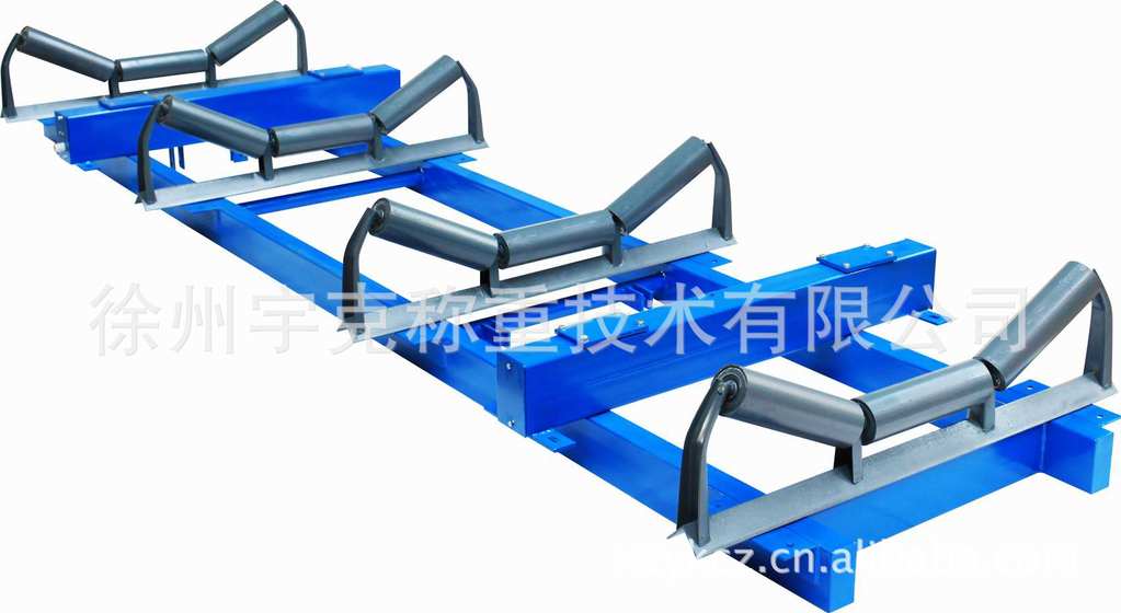 ICS-14型称重桥架为四组称重托辊,全悬浮式结构,无耳轴支点和运动部件。采用矩形钢管设计,整个称重桥架具有足够高的刚性,较小的自重,外表积灰面积达到最低。高精度电阻应变片式传感器安装与受拉部位,以减少非线性误差。保证整个系统的稳定性,其维护量极少。二只横梁上吊有四只拉式称重传感器对称重桥架提供支承。称重桥架为四单元组件结构,可方便、迅速地进行现场安装,只需八只螺栓安装固定。