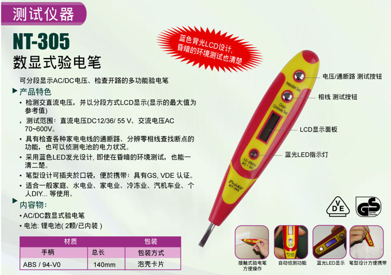 台湾ProsKits宝工NT-305数显测电笔 验电笔 试电笔