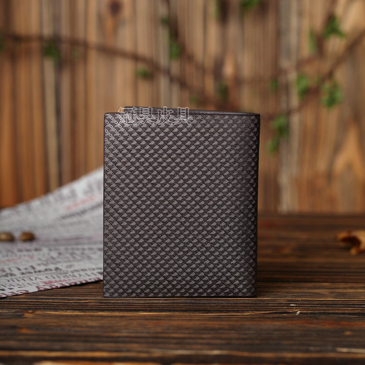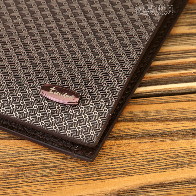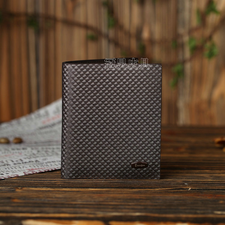 厂家生可贴牌订做LOGO正品品牌男士全真皮牛皮油边格菱纹西装钱包