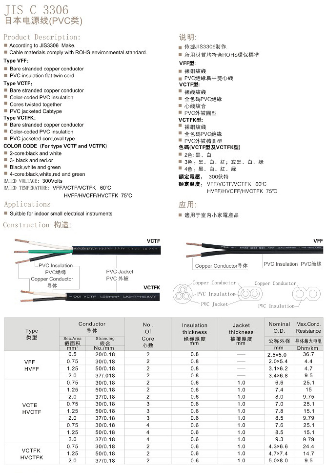 欧洲VDE认证电源线H05VV(H2)-F/H05V2V2(H2)-F