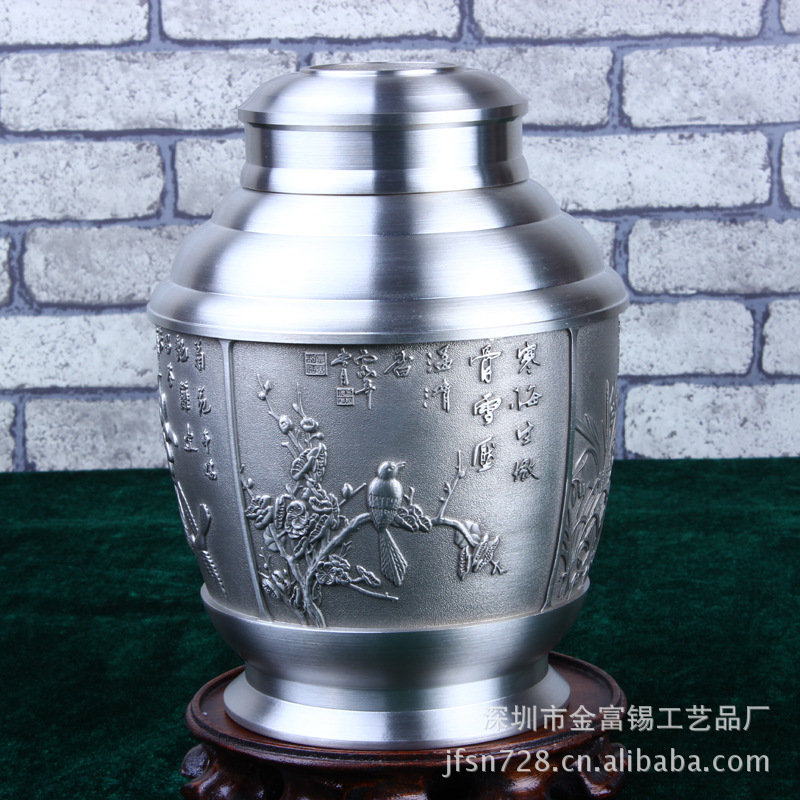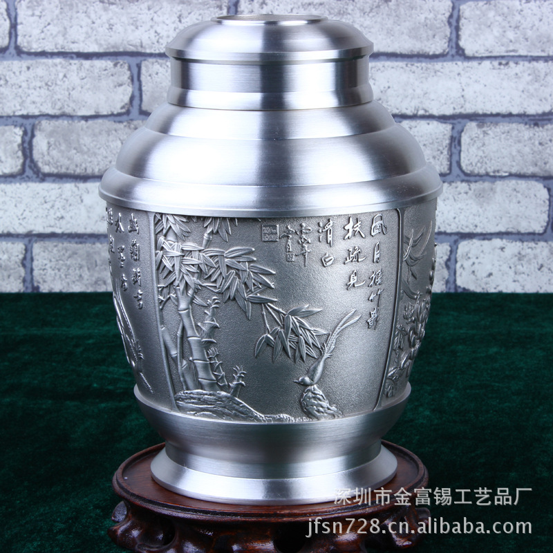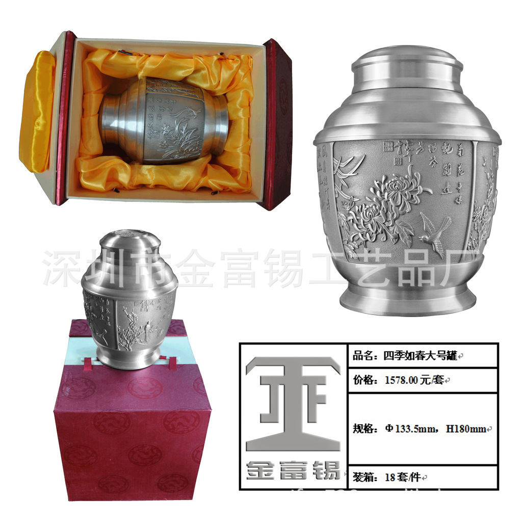 深圳市金富锡工艺品厂是一家专业从事纯锡工艺品的研发、生产、销售为一体的老牌企业。主要生产产品有:纯锡茶叶罐、锡茶具、锡酒具、陶瓷锡罐、奖盘等一系列锡制品。