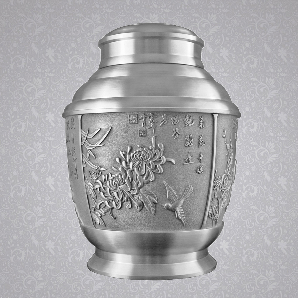 罐身取意春夏秋冬都如春暖花开,阳光明媚,是人们对生活的期盼,是最适宜人们生活的季节,春又是茶的最美好的气候。四季如春茶罐以梅、兰、竹、菊为图案。展示傲、幽、坚、淡的品质。显得高贵、典雅、精细、是集观赏与实用一体的好礼品。四季如春锡茶叶罐 生日礼品 纯锡茶叶罐 锡茶罐加工 订做 批发