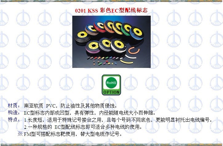 我司是专营KSS的配线器材目前产品有几万种[如;扎带、配线槽、浪管、固定头等]行销世界百于国,是亚洲最大的专业配线器材配套商,在电力、电子、机械、家具等工业领域深受信赖,现在阿里巴巴推出我们的形象产品KSS 配线标志系列,可为企业提供专业的产品配套,可为经销行业人士提供产品批发,我们以品质为保证,以服务求发展,期待与您的合作。