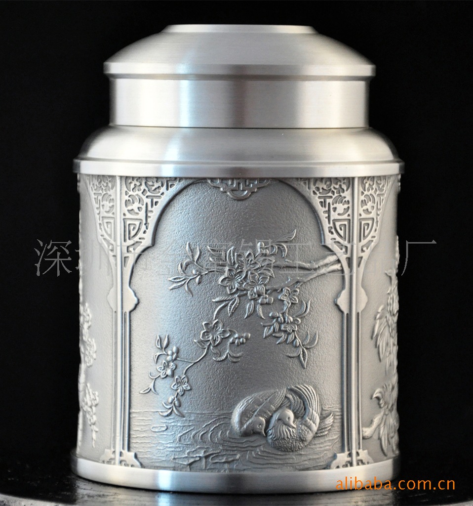 您好,我们是深圳市金富锡工艺品厂,我公司是一家专业从事纯锡工艺品的研发、生产、销售为一体的老牌企业。主要生产纯锡产品有:茶叶罐、茶具、酒具、奖盘等一系列锡制品。本厂生产的纯锡产品,是以97%以上的锡及3%的铜和锑为材料,