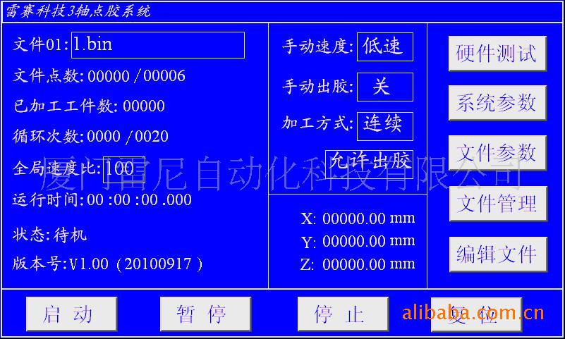 本系统主要适用于4轴以下三维点胶机运动控制系统。它支持单点和连续点胶;简单的示教编程方式,丰富的指令集(如椭圆、端口输出、等待输入、延时暂停等)和各种灵活适用的特殊功能(如批量修改、阵列复制、常用图形等),不仅方便了客户特殊工艺的实现,也简化了客户对文件的编辑与修改;除此之外,多达99个可编辑上万点的文件存储量使客户只需进行简单的选择操作,便可快速适应不同的工件;同时,最多4个点胶头的选择,可以大大的提高工作效率。另外,本系统还采用了实时多任务控制技术和硬件插补技术,工作时稳定性高,涂胶均匀,是一款性能优良的产品。
