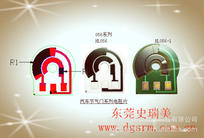 厂家直销汽车节气门位置传感器-056系列电阻片,质量保证,价格优惠,可根据客户要求尺寸订造产品! DHMY系列厚膜电阻板是本公司专门为电喷型汽车发动机节气门位置传感器设计的厚膜电路板。该产品采用丝网印刷、高温烧结、激光调阻等先进的厚膜工艺加工而成,产品在燃油、润滑油及盐化雾等工业环境下的耐腐蚀能力强,输出线性特性曲线好、抗磨性能强,使用寿命长,可用于德国BOSCH系统和美国DELPHI系统的节气门位置传感器。