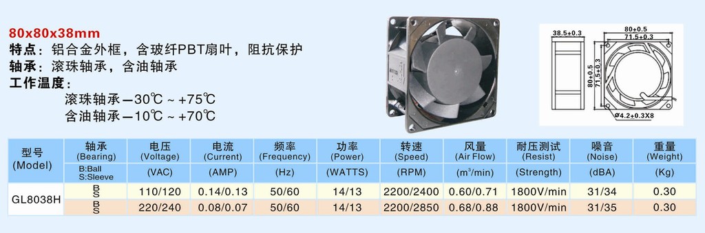 东莞市冠凌实业有限公司是专业生产交流轴流散热风机与机电技术研发为一体的公司。拥有各类用于设计开发、生产及检测的先进设备,高素质的管理与技术人才队伍,严格的质量控制,保证了产品的品质。公司开发生产的AC系列轴流散热风机具有运行寿命长、噪音低(使用外国进口滚珠轴承NSK,NMB轴承)振动小(使用动平衡测试仪对每个扇叶进行检测)、采用真空浸漆机保证绝缘漆渗透电机线圈内,提高线圈的机械、绝缘强度,起到良好的散热、防潮效果、安装方便等优点。测试工序有温度测试仪测试温升,高压测试,绝缘电阻测试,转速测试,噪音测试,电流,功率对每批进行抽样老化测试,以保证产品的质量,产品主要用于解决机械、机箱机柜、电焊机、医疗、网络通信、舞台灯光、家电、仪器仪表、电源、音响、计算机、自动控制等设备的通风散热。产品使用寿命保证滚珠轴承50000小时,含油轴承20000小时。