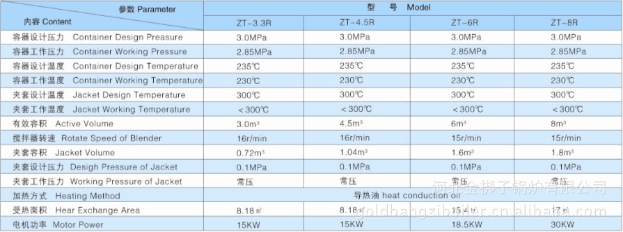 该产品为卧式II类压力容器,用导热油加热。罐口开关门有全自动和手动二种形式供用户选择。罐体上部为加料口、下部为出料口。全自动动态罐开关门由液压控制。手动动态罐开关门采用人工机械错口手动开关门,以上两种动态罐均与零压开关连锁,确保安全。搅拌器由JZQ系列减速器通过双排链轮传动或直给式转动,正反转可自动控制。搅拌浆形式为带状与附壁组合式。压力容器部件按GB150-98《钢制压力容器》标准设计、制造。由河北省锅炉压力容器监督检测所监检验收。