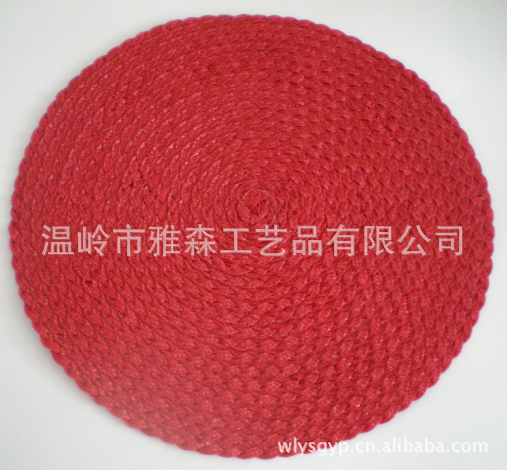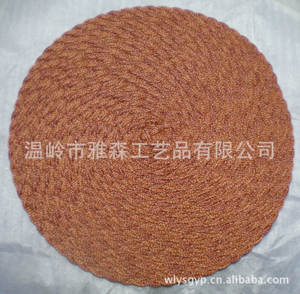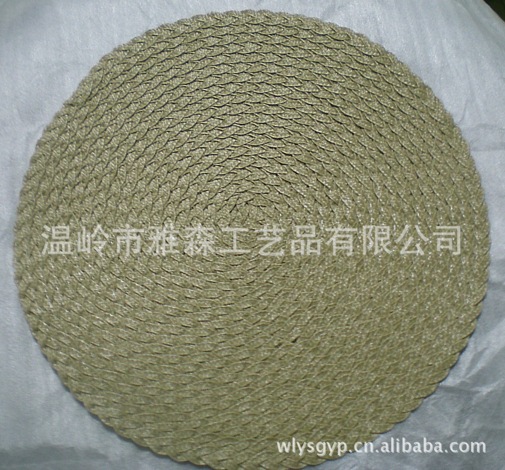 台州市雅森工艺品有限公司位于中国台州。公司前身是温岭市永连拉丝厂,该厂成立于1997年。温岭市永连拉丝厂是原料生产型企业,生产的原料主要提供给汽车坐垫,餐垫,杯垫,包和帽子等产品。因此在产品原料上台州市雅森工艺品有限公司有很大优势,可以为客户提供优质的质量和完美的价格。本公司现专业生产编织类产品如餐桌的布置产品,包括餐垫和杯垫,其生产材料主要有PP,PVC,PET,纸草,棉纱等。另外还提供帽子和编织类包的生产与加工。