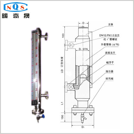 1.1 蒸汽夹套和水循环夹套:是在液位计主体管外增加一层筒体,供蒸汽、循环水或导热油流通;