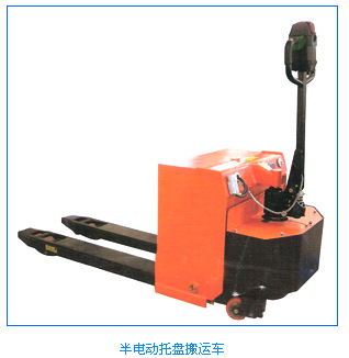 半电动托盘搬运车是以蓄电池为动力源,步行操作电动行走,手动液压提升的托盘搬运车。与全电动托盘搬运车的区别是液压提升是手动,可用托盘及集装箱形式进行单元化搬运物料,是仓库车间及厂区内部的物料装卸搬运货物的理想器械。用液压、电动提升及电动行走可发挥其最大优点,不需其它起重装卸设备协助,且载重量大,车型小巧,操作简易并无废气噪音等污染。目前已成为国内外的一种先进的理想的搬运工具。