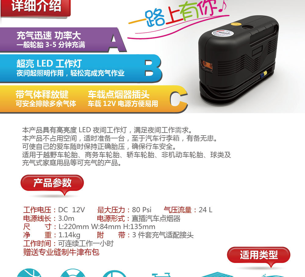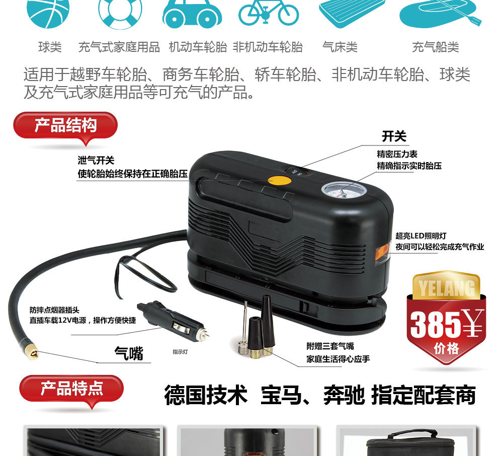 充气泵1616 车载充气泵 打气泵小型充气泵 轿车充气泵 轮胎充气泵
