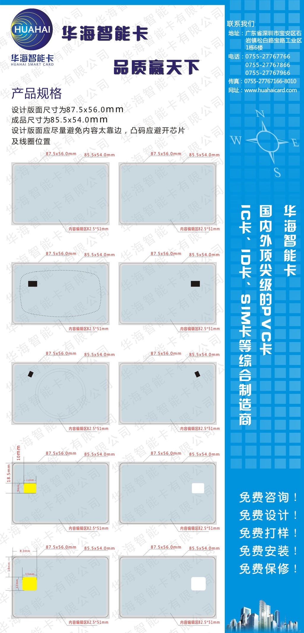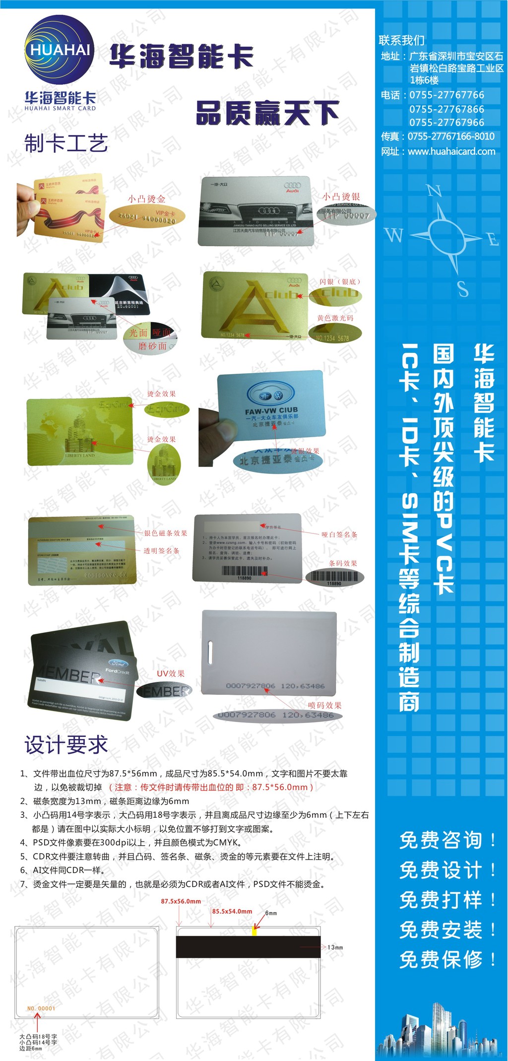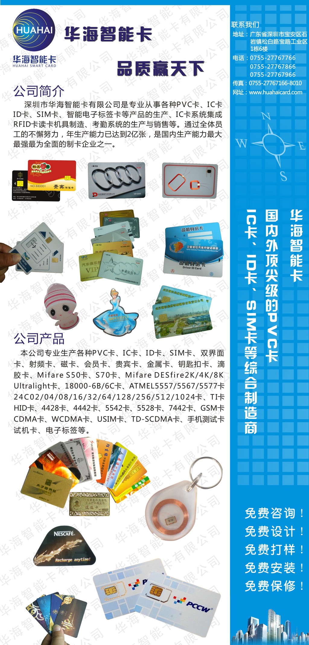 一:技术资料: IC卡从其使用方式上分为两种: (1)接触式IC卡:必须将IC卡插入主机卡口内,通过有线方式才能传输数据的一种IC卡。此卡易磨损、怕油污。美国的TM卡就是一种接触式IC卡。 (2)非接触式IC卡(射频卡):主机无卡口,IC卡无须和主机接触,通过无线方式就能传输数据的一种IC卡。由于其为整体封装,不怕油污和磨损,所以使用寿命长。 IC卡从其功能上分为三种: (1) 存储器卡。 (2) 带加密逻辑存储器卡:内有COS(卡操作系统)的一种存储器卡。 (3) CPU智能卡:内有CPU(中央处理单元)的一种存储器卡。 这三种卡又都分为接触式和非接触式。 非接触式IC卡又称射频卡、感应卡。在卡片内藏有微小的集成电路芯片和线圈。对应的卡表或读卡器内有一套电路,如一座可发射和接收无线信号的微型电台。当射频卡工作时,先在很短瞬间内,由卡表发射的电磁波在射频卡内通过电磁感应形成一个低压电源,射频卡同样变成一座微型电台,与卡表高速地进行一系列复杂的数据交换和信息传递,一瞬间,数据即交换完毕。 射频卡是通过射频信号来传递数据的,其寿命主要取决于芯片的寿命。而接触式IC卡的使用寿命不仅取决于芯片的寿命,而且主要取决于卡片的寿命。由于其触点反复插接,有些质量差的产品,插不了几次就会损坏芯片的集成电路。而射频卡无需接触和磨擦,所以相对来说,射频卡的寿命要长得多.