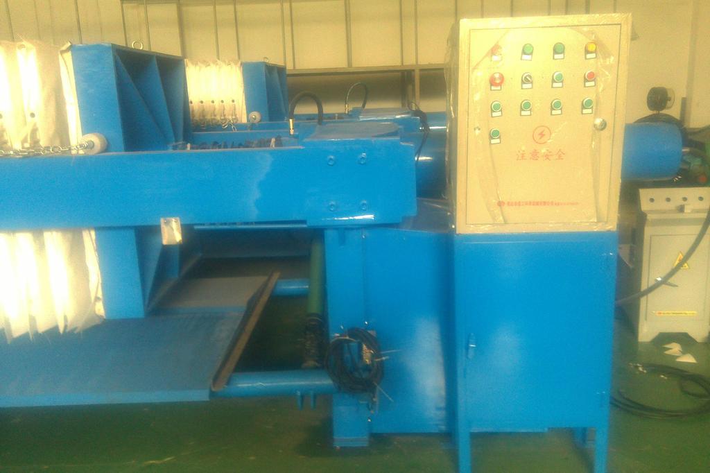 隔膜压滤机是由隔膜滤板(隔膜滤板是由两片聚丙烯膜片与高强度聚丙烯芯板热融合成)和厢式滤板排列组成虑室,在输料泵的作用下,将料将输入虑室,通过滤布将料将中的固体和液体分离,当料浆中的固体形成饼后,在向隔膜通入压缩空气,对虑室内的固体充分压榨,将低含水率。尤其对粘性物料的过滤及含水率要求高的用户,此机更有独特的特性。采用液压装置作为压紧,松开滤板的动力结构,具有操作简单、性能稳定。