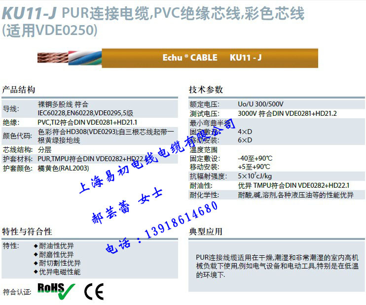 护套材料: PUR,TMPU符合DIN VDE0282+HD22.1