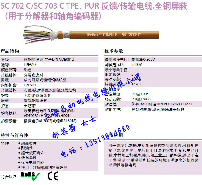 护套材料: 表面粗糙为PUR,TMPU符合DIN