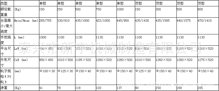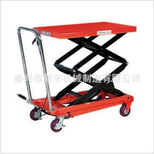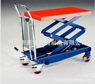 单、双剪叉式手动液压平台车(手动液压堆高平台车、手动液压剪式平台车)。采用高强度钢材制作而成,大方美观、结构牢固,设计结构合理,安全平稳可靠,内装安全阀,全密封油缸,手动控制液压系统升降,操作方便简捷。配有尼龙导向轮向轮节省操作者的体力,并能保护载重轮与托盘载重轮。独特液压泵设计,起泵简便为流水线装载和卸载操作保持一个理想高度而设计;加上独特人体工学设计,使操作者操作舒适。