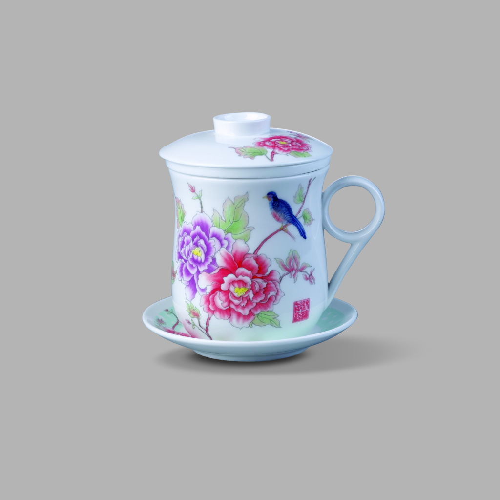 前程似锦系列-锦顺精美手绘陶瓷杯子 带茶托单杯 广告创意礼品